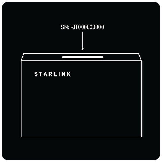 After purchasing Starlink from an authorized retailer or via transfer, your unique Starlink identifier will be needed to activate your service. You can locate the Starlink identifier through the Starlink app (Terminal ID) and/or by the Kit Serial Number (either on the shipping label or hardware). Please see details on where to find the Starlink identifiers below.