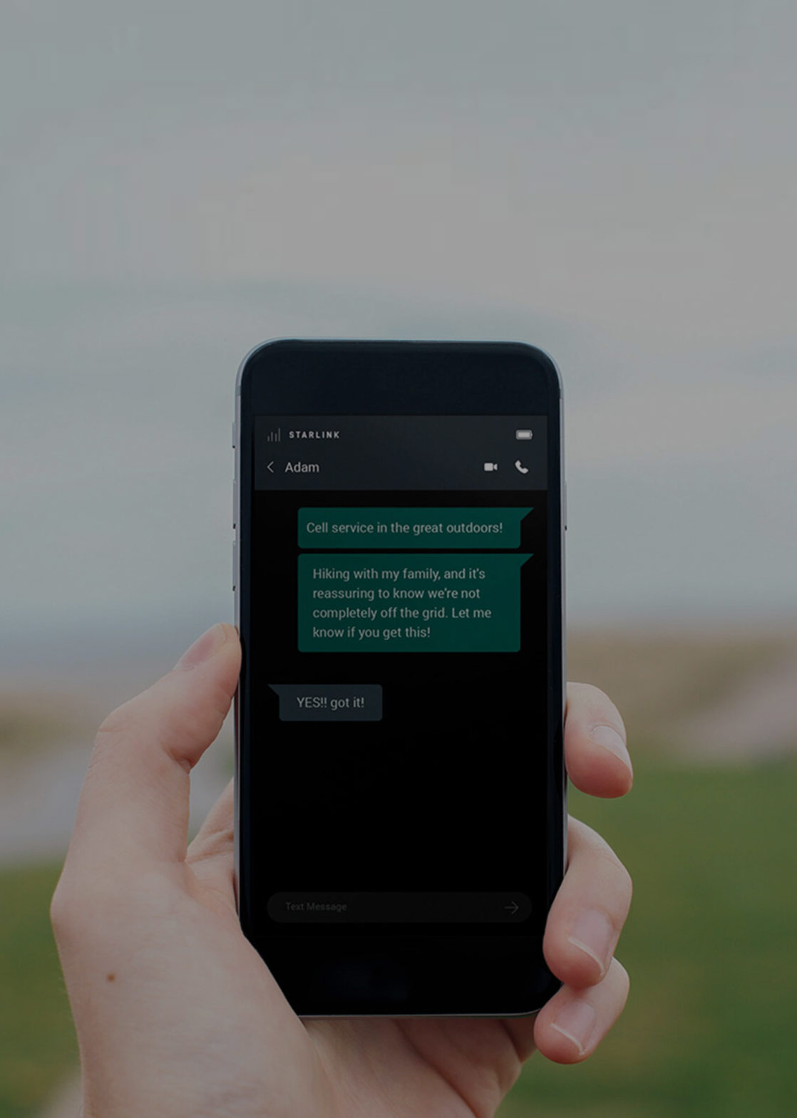 Direct to Cell works with existing LTE phones wherever you can see the sky. No changes to hardware, firmware, or special apps are required, providing seamless access to text, voice, and data.