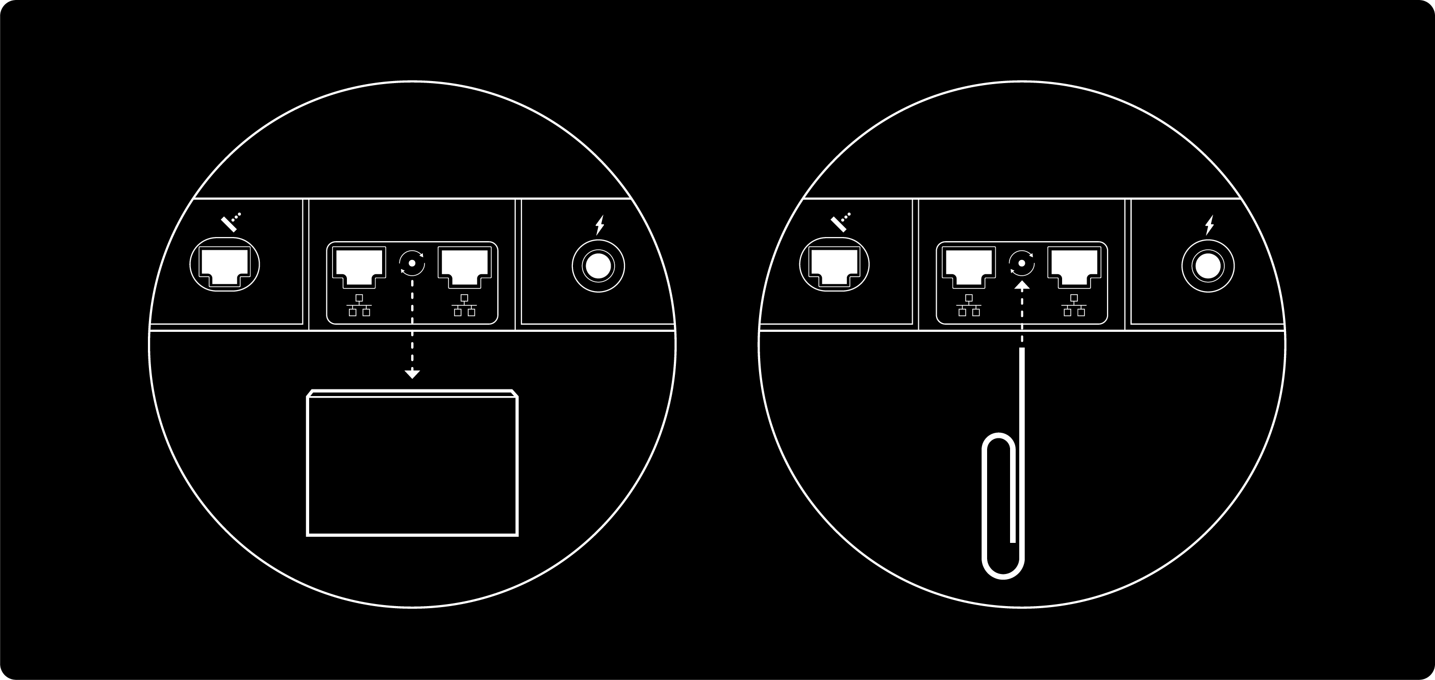 - Locate the reset icon and button on the back of your router.